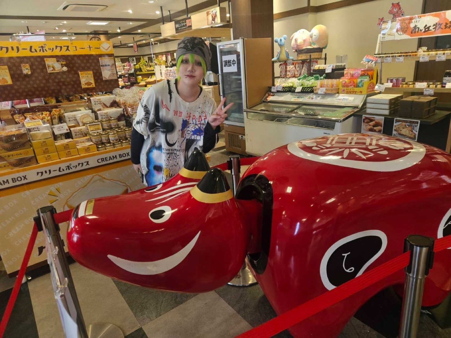 会津で赤べこと写真撮ったよ〜!💚
